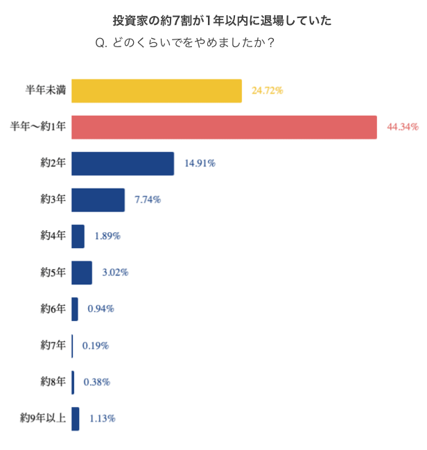 約7割の人は1年も経たずに元金を失い退場しているというデータがあり、